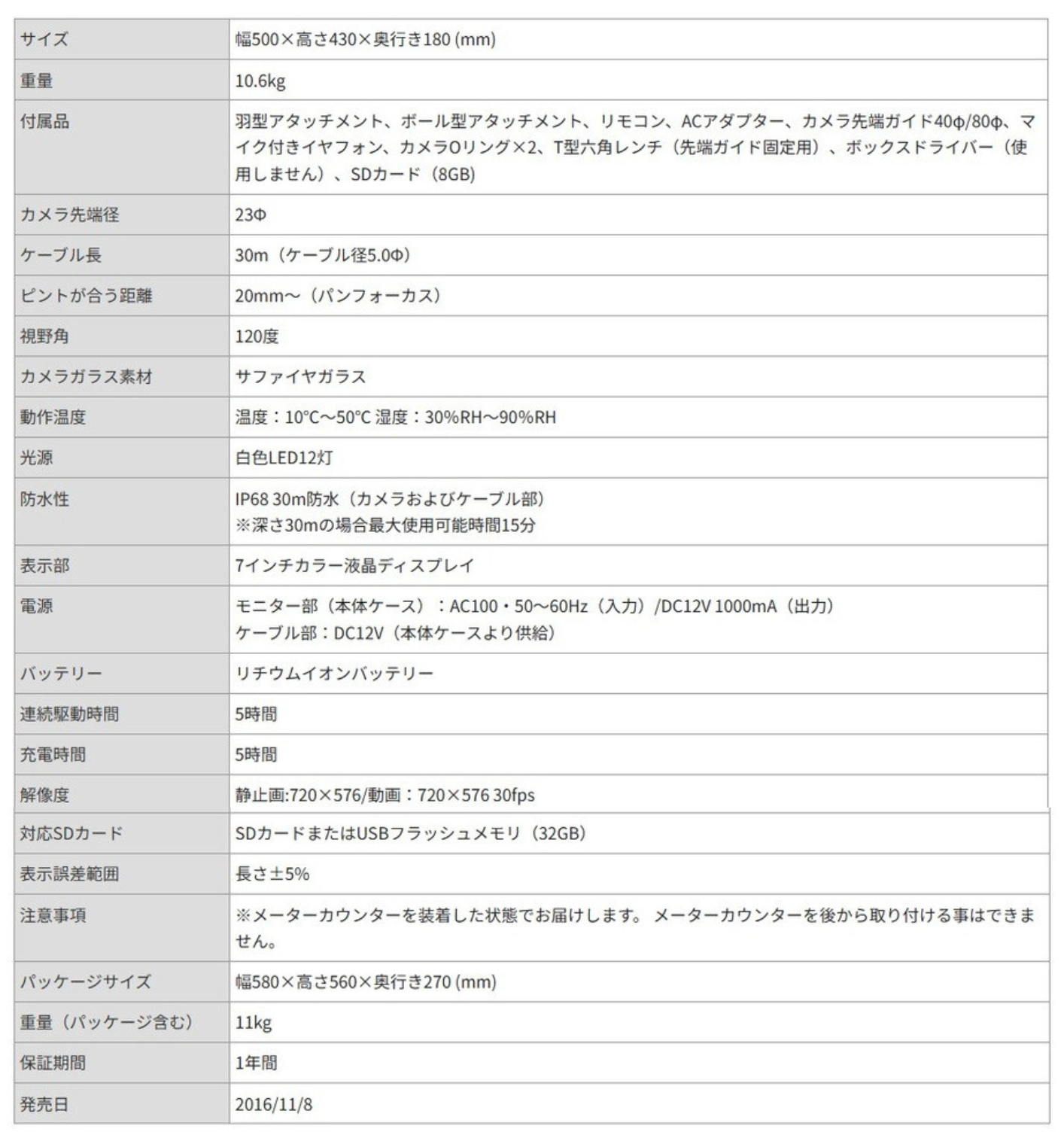 メーターカウンター付きなので、カメラケーブルの長さを正確に確認することが可能です。